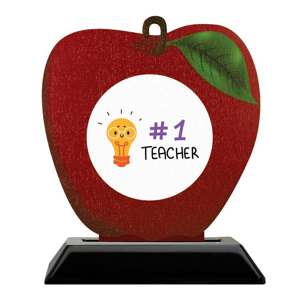 - 5" Apple Shape Birchwood Award Trophy With Black Base