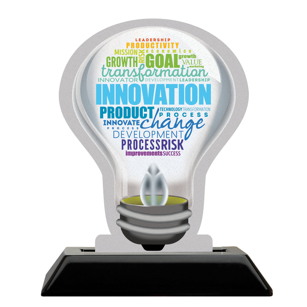 • 5" Light Bulb Shape Birchwood Award Trophy With Black Base