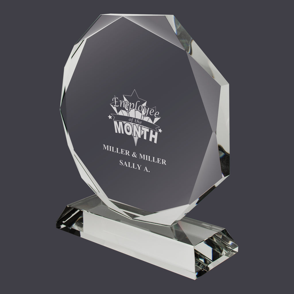 Celebrate standout achievements with refined sophistication. Measuring 7 inches tall by 6 1/4 inches wide, this octagon-shaped optical crystal award features a sturdy, attached base for graceful display. Expertly crafted from 100% lead-free crystal, it showcases brilliant clarity and striking light refraction, making it a perfect choice for commemorating career milestones, recognizing top performance, or presenting a truly distinguished gift.