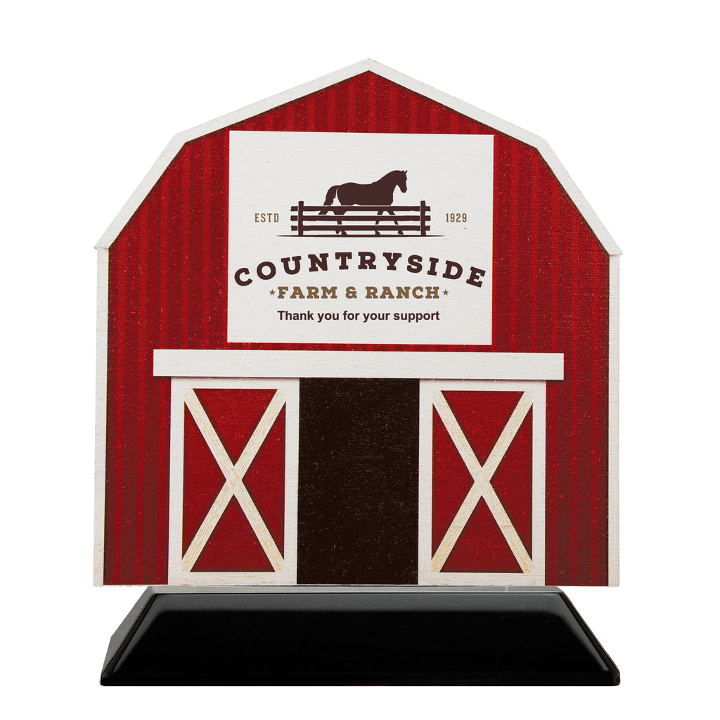 - 5" Barn Shape Birchwood Award Trophy With Black Base