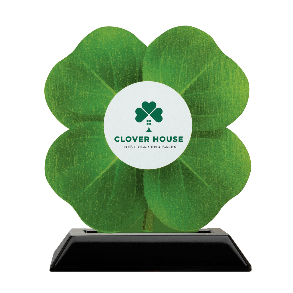 - 5" Clover Shape Birchwood Award Trophy With Black Base