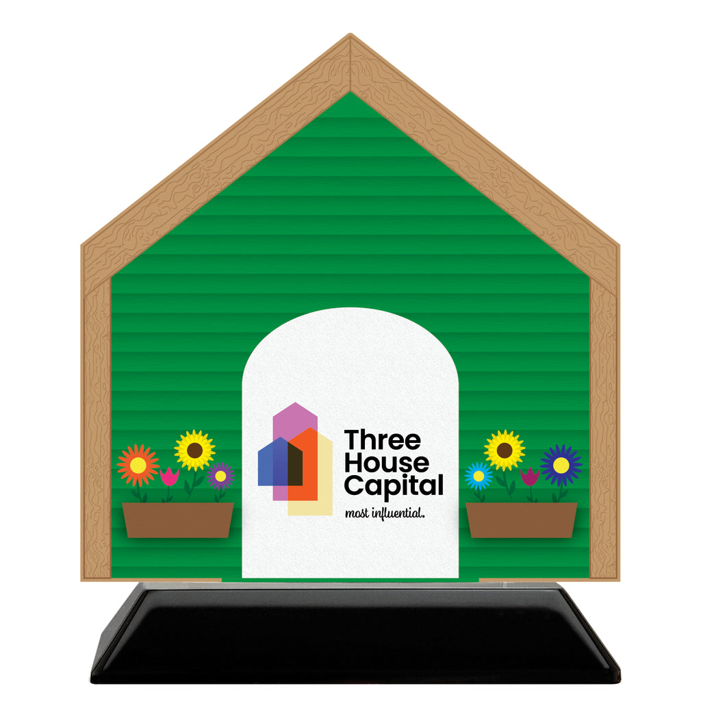 - 5" Dog House Shape Birchwood Award Trophy With Black Base