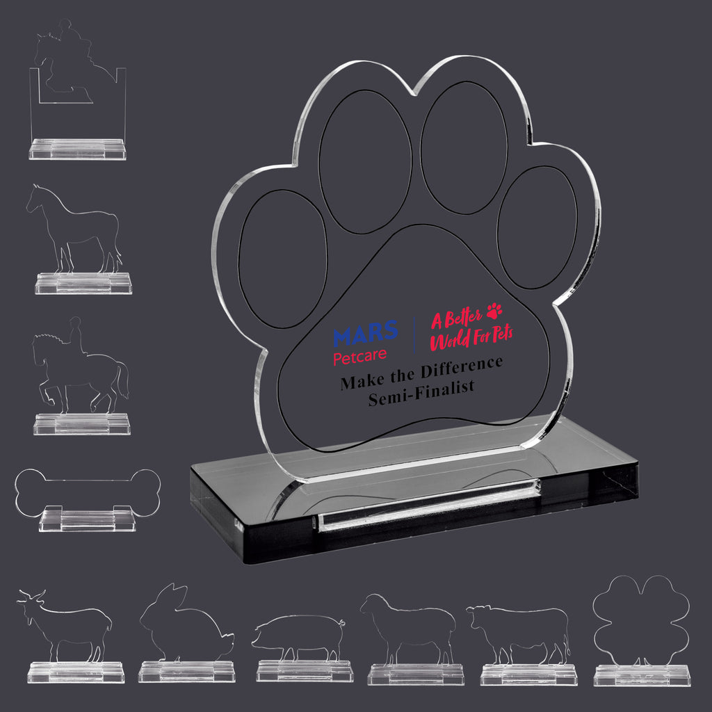 • 12 Shapes: 1/4" thick, full color acrylic awards